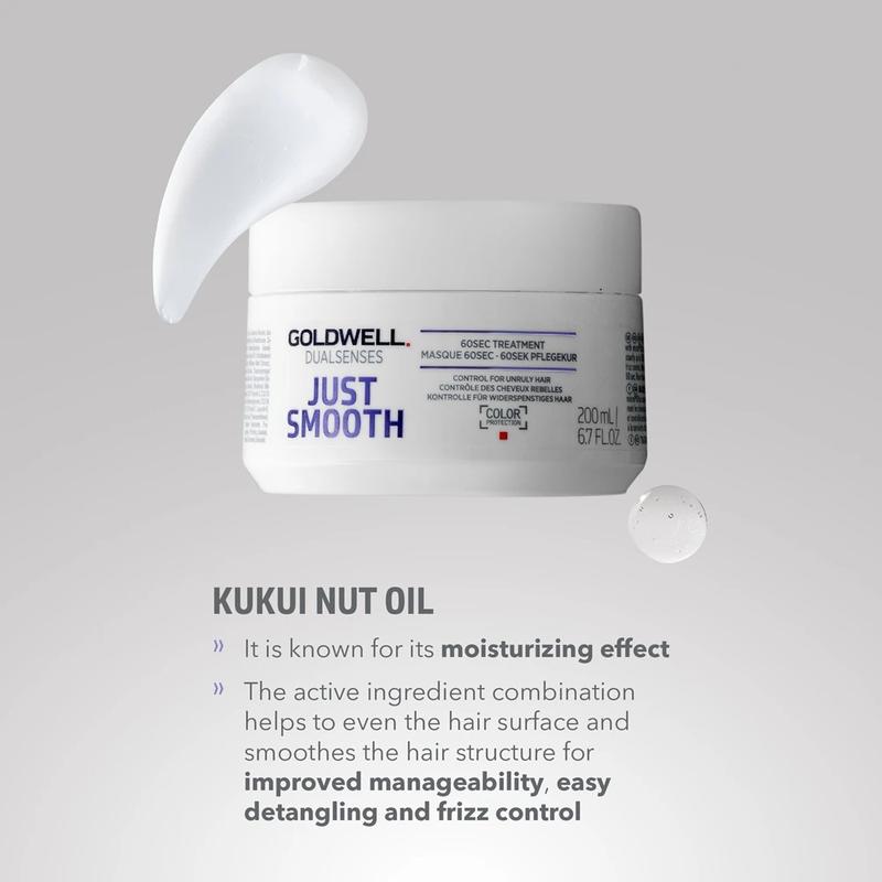 Маска для разглаживания непослушных волос Goldwell Dualsenses Just Smooth (200 мл) Goldwell Dualsenses Just Smooth Taming Mask - это интенсивное профессиональное средство для мгновенного укрощения непослушных, жестких и склонных к пушистости волос. Благодаря инновационным комплексам, маска действует всего за 60 секунд, обеспечивая салонный результат в домашних условиях. ✨ Основные преимущества: Мгновенное разглаживание: Эффективно дисциплинирует волосы, делая их гладкими и послушными. Контроль пушистости: Надежно защищает от влажности и предотвращает нежелательное завивание в течение дня. Легкое расчесывание: Глубоко питает структуру, облегчая процесс укладки и распутывания узелков. Защита цвета: Технология FadeStopFormula минимизирует вымывание пигмента окрашенных волос. Быстрое действие: Формула «60 секунд» позволяет получить интенсивный уход даже при ограниченном времени. 🧬 Ключевые технологии: Масло ореха Кукуи: Богатая питательными веществами, она выравнивает поверхность волос, увлажняет их и придает невероятный блеск, не утяжеляя пряди. Комплекс microPROtec: Обеспечивает быстрое и равномерное распределение уходовых компонентов по всей длине волос. 🧴 Способ применения: Нанесите небольшое количество маски на чистое, подсушенные полотенцем волосы. Равномерно распределите средство по длине, уделяя особое внимание кончикам. Залиште для впливу на 60 секунд. Тщательно смойте теплой водой. 🎯 Кому подходит: Идеальный выбор для обладателей жестких, пористых, непослушных или вьющихся волос, нуждающихся в дополнительном разглаживании и мягкости. Результат: Шелковистые на ощупь, блестящие и идеально гладкие волосы, которые легко поддаются любой укладке.