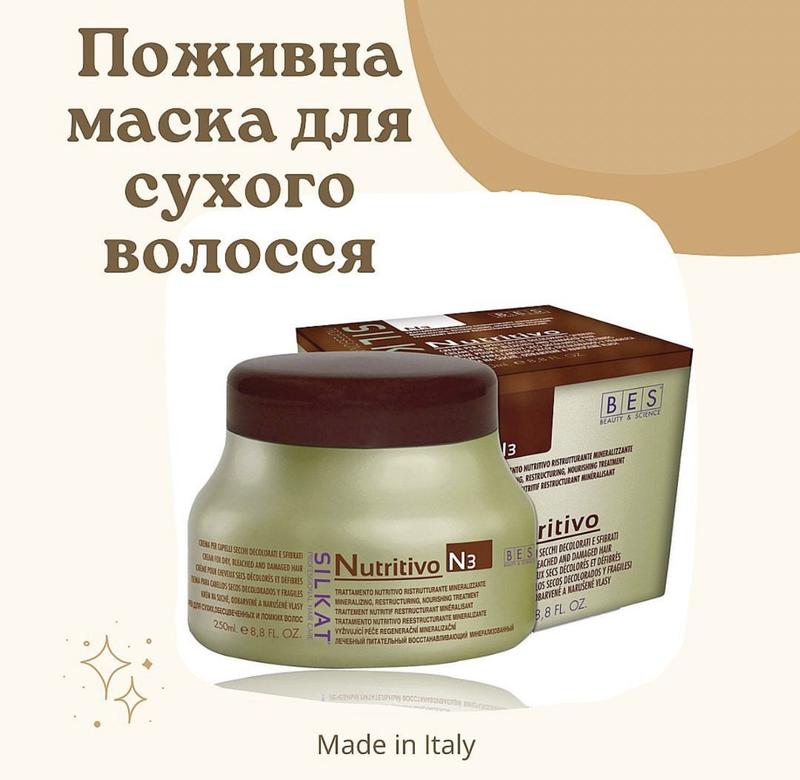 Крем-компресс Silkat N3 - это интенсивное средство восстановления, минерализации и глубокого питания волос. Формула на основе натуральных масел и витаминного комплекса возвращает волосам силу, эластичность и блеск. Средство обеспечивает термозащиту, уменьшая негативное влияние горячей укладки. Основные свойства: ✔ Восстанавливает поврежденные волосы ✔ Питает и увлажняет благодаря натуральным маслам ✔ Придает блеск и гладкость ✔ Обладает термозащитным эффектом ✔ Минерализует волосы благодаря комплексу микроэлементов Активные ингредиенты Silkat N3: Миристиловый спирт - обеспечивает блеск и гладкость Масло семян льна и оливковое масло - питают и увлажняют Минеральный комплекс (мультивитамины, кремний, медь, цинк, магний, железо) - восстанавливает структуру волос