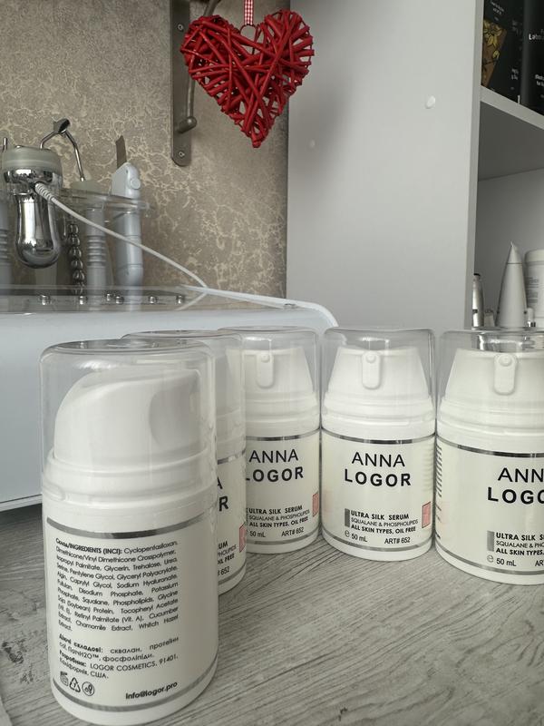 сироватка в обьемі 50 мл флакончик з дозатором 650 грн ❣️ есть распив от 10 мл ❣️ 140 грн Интенсивная гель-сыворотка с натуральными составляющими Анна Логор🥰 Anna Logor Ultra Silk 50 ml Art.652 Правильный уход за кожей лица в любом возрасте имеет большое значение в плане сохранения молодости и красоты.🥰 Интенсивная гель-сыворотка Ultra Silk торговой марки Анна Логор создана настоящими профессионалами в бьюти индустрии. В состав сыворотки входят только проверенные компоненты природного происхождения: фосфолипиды, увлажняющий комплекс Патч Н2О, протеины шелка, витамины А и Е, экстракты ромашки, окопительность и алоэ-вера. Благодаря такому насыщенному составу сыворотка Anna Logor Ultra Silk обладает массой положительных свойств: - обладает антиоксидантным, успокаивающим и увлажняющим эффектом; - улучшает барьерные функции рогового слоя, стимулирует синтез керамидов; - тонизирует кожу, восстанавливает естественный баланс влаги; - разглаживает мелкие морщинки, придает коже шелковистость; - выравнивает рельеф. Сыворотку Анна Логор можно применять в качестве основы под макияж. Наносят ее на очищенную кожу лица дважды в день. После этого рекомендуется использовать увлажняющий крем той же марки для конкретного типа кожи.