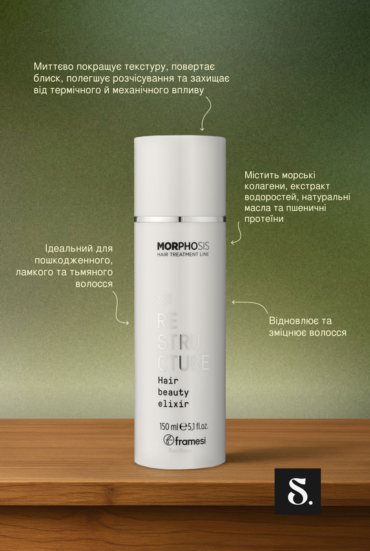Framesi Morphosis Restructure Hair Beauty Elixir - профессиональный эликсир для интенсивной реконструкции поврежденных волос. Формула обогащена экстрактом ферментированного риса, растительными пептидами, фитоколлагеном и гиалуроновой кислотой, которые комплексно восстанавливают волокно волос изнутри и снаружи. Экстракт ферментированного риса обеспечивает высокое содержание белков и аминокислот, которые возвращают волосам прочность и упругость. Phyto-Collagen Active стимулирует клеточную активность, замедляет старение и улучшает микроциркуляцию. Растительные пептиды и аминокислоты, подобные кератину, помогают реструктурировать поврежденные волосы, а гиалуроновая кислота поддерживает оптимальный уровень увлажнения. Эликсир уплотняет и закрывает кутикулу, создавая защитный барьер от УФ лучей, высоких температур и негативных факторов окружающей среды. Результат — волосы становятся плотными, увлажненными, гладкими и блестящими уже после первого применения. СПОСОБ ПРИМЕНЕНИЯ: Нанести несколько капель эликсира на подсушенные полотенцем волосы, равномерно распределив по длине избегая корней (примерно 5 см). Оставьте на 10-15 минут. После чего смойте теплой водой.