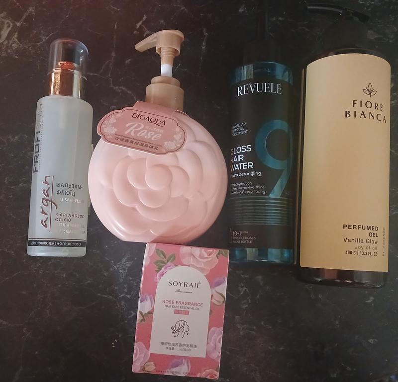 Лот средств для волос и тела 🌺Жидкий кондиционер для сухих и ломких волос Revuele-одно использование открытого 09.25р. 🌺Гель парфюмированный для душа "Ваниль"-НОВЫЙ 400мл. 🌺Бальзам-флюид-одно использование открывает 09.25р. 🌺Капсули для волосся Soyraie Hymeys Rose Oil з маслом троянди (28 шт) 🌺Крем для рук с ароматом розы-половина открытая 08.25р. сроки в норме 2027,2028р.,цена за все! Смотрите другие Мои объявления!💕