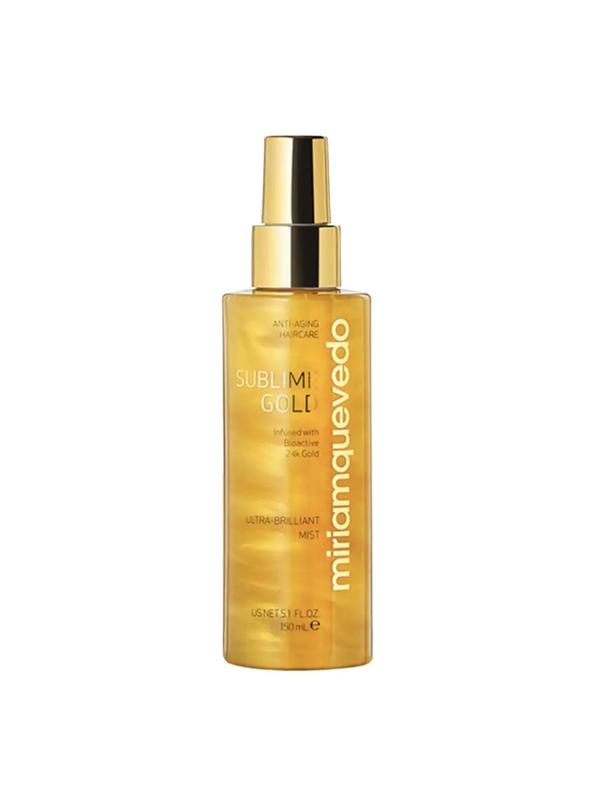 Miriam Quevedo Sublime Gold Ultra-Brilliant Mist - захисна димка для волосся з мікронізованим 24-каратним золотом. Вона створює захисну вуаль від ультрафіолету. Культова формула складається з олій і екстрактів для здорового та блискучого волосся. Ключові компоненти: рослинні олії: арганії, кукурудзи, оливки, соняшника, камелії - розкішний бленд для захисту кутикули волосся від зовнішніх агресивних чинників; мікрочасточки 24-каратного золота - дарують пасмам нереальний блиск; екстракт листя розмарину - компонент для профілактики сивини та випадання волосся. Miriam Quevedo Sublime Gold Ultra-Brilliant Mist залишає на волоссі ароматну вуаль із квіткових відтінків жасмину та конвалії, соковитого яблука та полуниці в сандаловому огранюванні. Міст підходить для всіх типів волосся Особливо для сухого, ослабленого, тьмяного та пористого. Вираженіший результат за умови використання інших продуктів лінії Miriam Quevedo Sublime Gold. Як використовувати Добре струсіть перед використанням, щоб змішати та активувати підсилювач блиску та порошок 24-каратного мікронізованого золота. Розпиліть на сухе, укладене волосся (з відстані 20 см) для блиску та сенсаційного обʼєму. Порада від Miriam: наповніть свою шкіру коштовними активними компонентами ультраблискучого місту. Нанесіть спрей на зону декольте, плечі та ноги, щоб зволожити шкіру, аби вона залишалася гладенькою, омолодженою, сяйною та здоровою.
