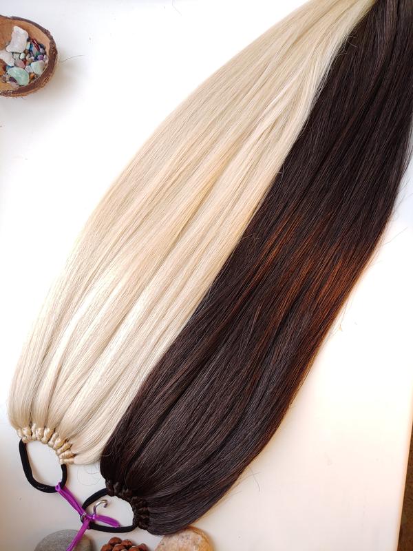 Афрохвост (накладной) В наличии блонд и темно-коричневого цвета Вага 80-90 грамм Длина 65 см Многоразовый и объемный Легко крепить и снимать Отлично перекрывает свои волосы Изготовление под заказ 2-4 дня Отправка по Украине и за пределы, мастерская в Кременчуке