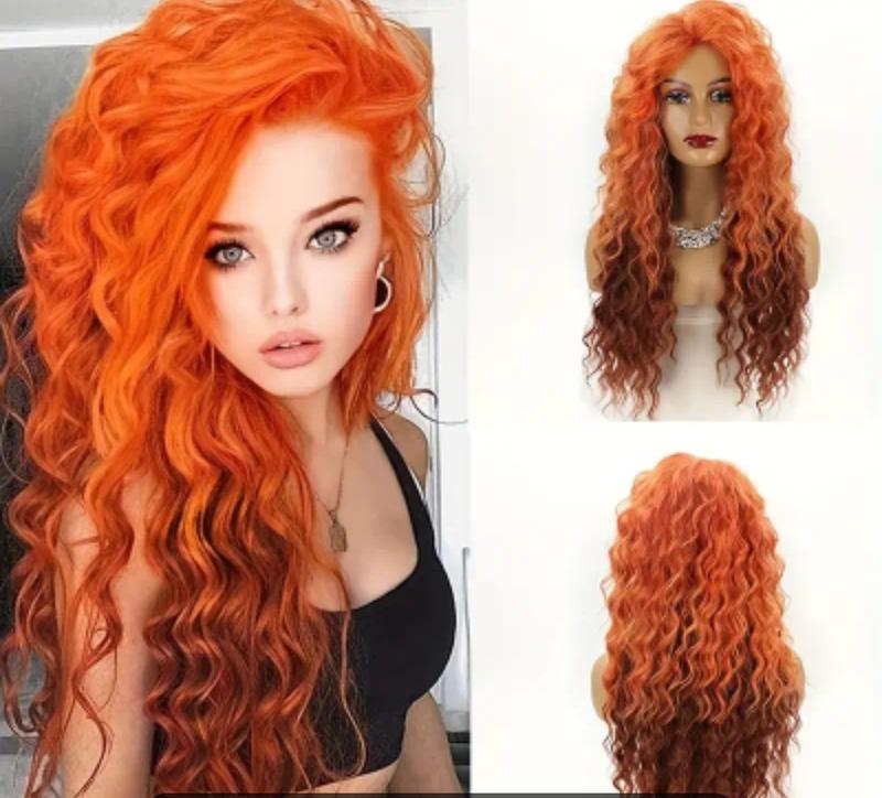 Парик длиной 61 см Длинный вьющийся парик Материал : волокно высокой температуры