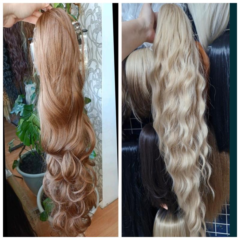 Шиньен,хвост натуральний біопротеїн на крабі Ручна робота!якісна! Колір на фото : є блонд хвилястий намкрабі і світло русий беж на крабі Нові, довгі,пишний хвост 80 см Волосся м'яке та слухняне,живе,НЕ ПЛУТАЄТЬСЯ! Крутяться на плойку або випрямляються праскою. Температура до 180 °C Мити як і своє волосся доставка В мене гарні відгуки та більш 100 успішних доставок! Також можна забрати в Київі