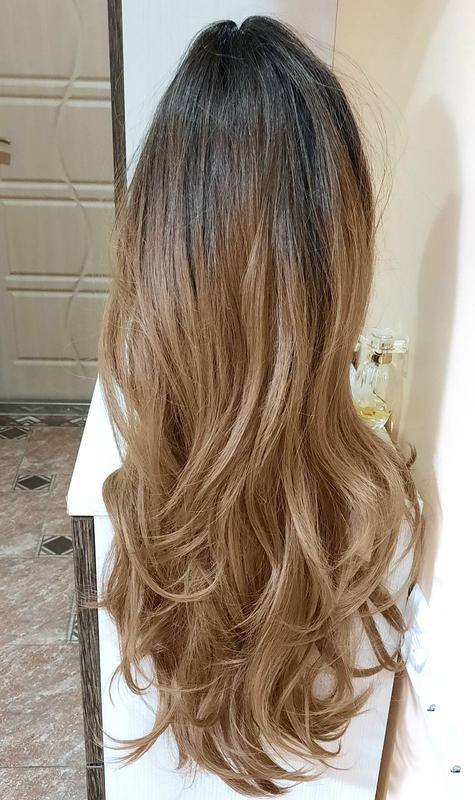 Шикарная парик длинная русявый омбре с чубчиком