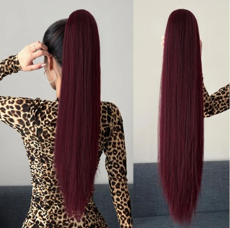 Хвіст рівний шиньйон на крабі термоволокно з утяжкою вишня бургундія - 67 см
