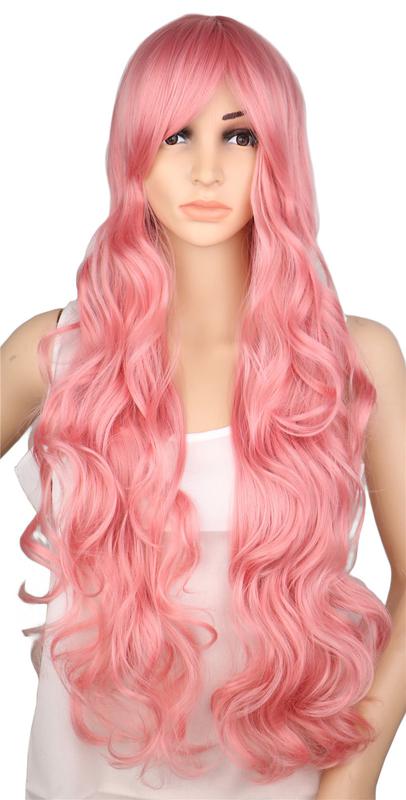 Парик розовый волнистый длинный