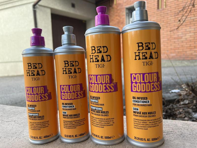 400+400мол. - 10550 грн. окремо 550грн. 600+600мл. - 1220грн. окремо 630грн. 750+750мол. - 1400грн. 970+970мол. - 1800 грн. окремо 920грн. 🔥Шампунь TIGI Bed Head Colour Goddess Oil Infused Shampoo Забарвлене волосся потребує спеціального дбайливого догляду за ним, який запобіг би їх сухості і ламкості. Для цієї мети ви могли б купити шампунь для фарбованого волосся TIGI Bed Head Colour Goddess Oil Infused Shampoo, який спеціально був розроблений для догляду за локонами, які піддавалися фарбуванню. Цей шампунь надійно захищає локони від вимивання кольорів. Багато жінок знають, що вже після другого миття голови після фарбування колір волосся починає тьмяніти. Потім фарба поступово вимивається і згодом колір стає дуже бляклим і тьмяним. Але якщо регулярно використовуватися догляду за локонами шампунь TIGI Bed Head Colour Goddess Oil Infused Shampoo, то можна запобігти всім цим проблемам. Волосся виглядатиме красивим і здоровим 🔥Кондиціонер TIGI Bed Head Colour Goddess Oil Infused Conditioner Поживна формула для яскравості кольору інтенсивно живить Ваше волосся, роблячи його менш пористим і зберігає колір яскравим на більш тривалий термін. Входять до складу олії солодкого мигдалю та кокосу, а також кератин – проникають у кортекс волосся та допомагають розгладити кутикулу. Кондиціонер захищає забарвлене волосся від вимивання кольору і зберігає колір сяючим.