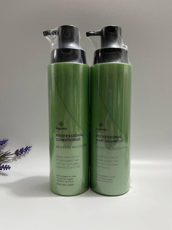 Професійний безсульфатний шампунь для волосся "Кератинове відновлення з пантенолом" Шампунь із гідролізованим кератином та пантенолом відновлює пошкоджене волосся. Масло кокосу і авокадо зволожують, надають блиск, запобігають ламкості і появі кінчиків, що січуться. Не містить сульфатів. Для всіх типів волосся. Спосіб застосування Нанести на вологе волосся, спінити, змити. Об'єм: 400мл Ціна опт/дроп: від 20 шт 190 грн Професійний кондиціонер для волосся "Кератинове відновлення" Кондиціонер з гідролізованим кератином, вітамінами Е та В5 живить, відновлює структуру волосся. Олія кокосу та авокадо полегшують розчісування та укладання, захищають від впливу негативних зовнішніх факторів. Не містить парабенів та фталатів. Для всіх типів волосся. Спосіб застосування Нанести на вологе чисте волосся по всій довжині, залишити на 2-3 хвилини, ретельно змити. Об'єм: 400мл