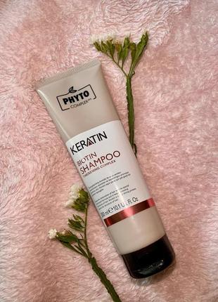 🌺Ущільнюючий шампунь з кератином і біотином для всіх типів волосся, 300 мл 🌺Шампунь містить запатентований активний фітокомплекс AHL із 24 рослинних екстрактів, який захищає волосся від випадіння, а також лікує та відновлює його структуру. ✅️Кератин у формулі проникає до волосяних фолікул, зміцнює та глибоко зволожує, в такий спосіб відновлюючи втрачену еластичність пошкоджених прядок та повертаючи їм здоровий вигляд. ✅️Вітамін В7 або біотин суттєво покращує природну міцність волосся.