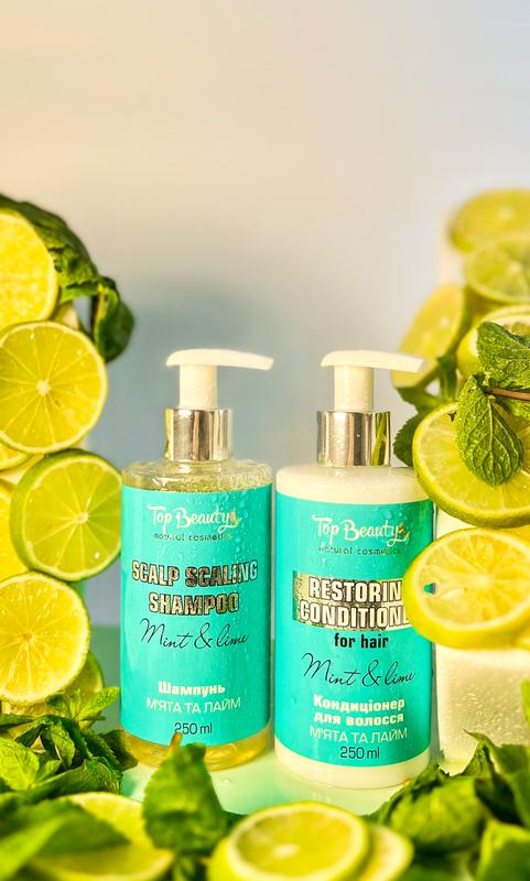 С ним вы будете реже мыть волосы😉 Идеальный набор для волос склонных к жирности.🌿 1️ ⁇ Шампунь для глубокого очищения кожи головы «Мята -Лайм» от Top beauty 250ml. Высокая концентрация натуральных активных компонентов делает уход профессиональным и бережным. Масло мяты и кератин обеспечивают необходимое питание. Глубоко очищает кожу от всех видов загрязнений. Прохладный мятный шампунь содержит уникальную смесь из масел и растительных экстрактов, которые уменьшают зуд и жжение, при этом балансируя рН кожи головы. Подойдет для всех видов волос. Способ применения Нанесите необходимое количество шампуня на мокрые волосы, вспеньте. Тщательно смойте пену теплой водой. При необходимости повторите. Подходит для ежедневного использования. 2️ ⁇ Кондиционер для интенсивного восстановления волос Мята -Лайм от Top beauty 250ml. нежно ухаживает за волосами, восстанавливает структуру каждого поврежденного волоса, питает и наполняет локоны жизненной силой. Волосы становятся мягкими, легко расчесываются. Оказывает эффект увеличения объема волос путем образования пленки на волосе. Масло семьи крамбе, которое входит в крружку средства: обеспечивает волосам мягкость, питание и естественный блеск. Ментол поспособствует улучшению тонуса кожи головы, улучшит метаболизм в верхних слоях эпидермиса, придаст приятное ощущение свежести и прохлады. Предотвращает чрезмерную секрецию сальных желез, спасая от эффекта «жирных волос». Способ применения: после мытья головы, нанести на влажные волосы кондиционер и распределить по всей длине волос. Подождать 1-2 минуты и тщательно промыть водой.