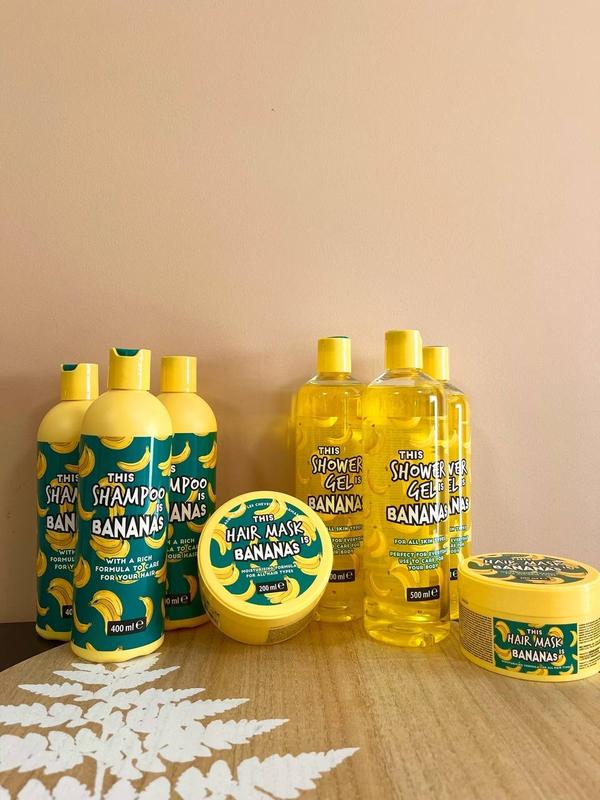 ПРЕМИУМ КАЧЕСТВО ГОЛАНДИЯ Банановая серия, большие достаточно объемы Очень насыщенный аромат банана (на волосе оставляет приятный сладковатый шлейф бананового аромату Шампунь длы всех типов волос 400%. 1 Цена: 165 Гель для душа для ежедневного ухода 500мл цена: 165 BANANAS Густая увлажняющая маска для всех типов волос 200мл