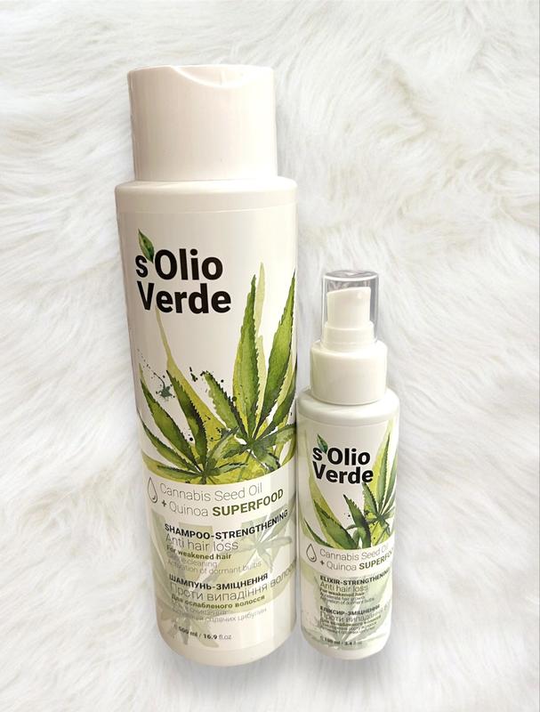 Лінія «Проти випадіння від “Solio Verde” Шампунь-зміцнення проти випадіння волосся. Олії: коноплі та кіноа. Делікатно очищує волосся та шкіру скальпа, відновлює життєву силу, блиск та еластичність Ціна 219грн(500мл) Еліксир-укріплення проти випадіння волосся. Олії: коноплі та кіноа. Активно діє на шкіру скальпа та фолікули волосся. Інтенсивно живить, зволожує та зміцнює цибулини, що продовжує їх фазу росту та створює сприятливі умови для росту нового волосся Ціна 219грн(100мл)