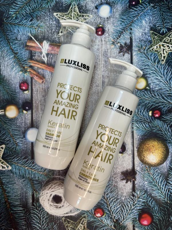 Виробник: Luxliss Тип засобу: Шампунь Набір включає: 1. Шампунь Luxliss 500 мл 2. Кондиціонер Luxliss 500 мл Дія: Повертає волоссю еластичність, силу та блиск, суттєво полегшує розчісування та укладання. Формула багата кератином, відновлює та зміцнює волосся зсередини, покращуючи його структуру без обтяження. Захищає волосся від шкідливого впливу навколишнього середовища та хімічних пошкоджень. Забезпечує волоссю інтенсивне зволоження, роблячи волосся гладким і блискучим. Створює волоссю захисну плівку, тим самим продовжує ефект після кератинового випрямлення/ботоксу та інших процедур. Всім найкрасивішого волосся!