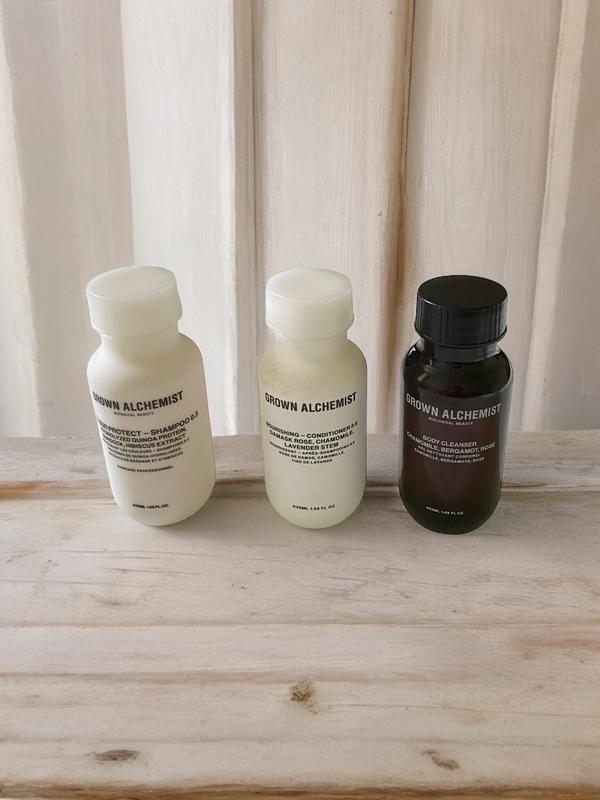 набор средств от австралийского бренда GROWN ALCHEMIST Высококачественные средства по уходу за телом в волосах, очень удобно для короткодвижных путешествий. Цена указана за единицу ✅ Grown Alchemist Colour Protect - Shampoo 0.3 - Шампунь для защиты цвета 0.3 50ml ✅ Grown Alchemist Nourishing - Conditioner 0.6 - Кондиционер для питания волос 0.6 Дамасская Роза, Ромашка, Лаванда, 50ml ✅ Grown Alchemist Body Cleanser - Гель для тіла Ромашка, Бергамот, Троянда, 50ml