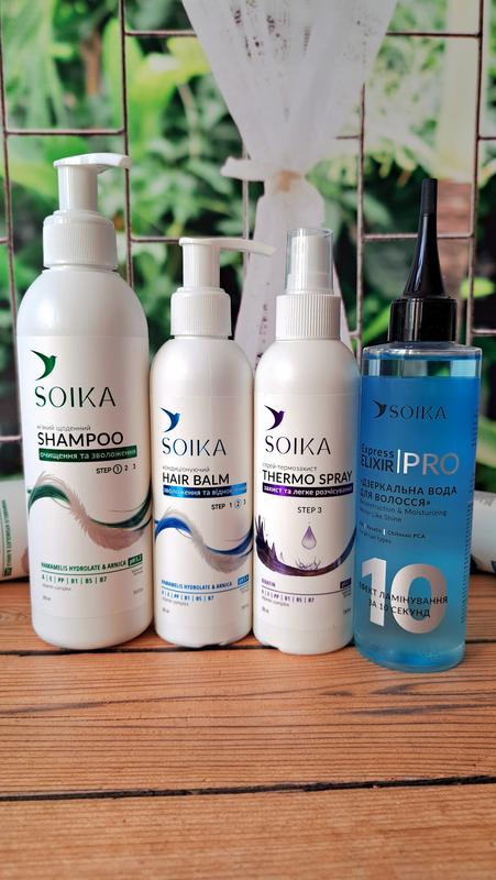 🔥Ціна за набір: ✔️Шампунь для усіх типів волосся 300 мл ✔️Кондиціонуючий бальзам для усіх типів волосся 200 мл ✔️Спрей-термозахист "Захист та легке розчісування" 200 мл ✔️Дзеркальна вода "Реконструкція та зволоження" 200 мл ❗️БЕЗ ПАРАБЕНІВ ТА СИЛІКОНІВ❗️ 🤍Мʼякий щоденний шампунь SOIKA з гідролатами гамамелісу, арніки й вітамінами для всіх типів волосся: ✨️Завдяки нейтральному рівню pH 5,2 ( pH шкіри людини 5,5) делікатно очищує шкіру голови та волосся, не пошкоджуючи захисний шар шкіри та не травмуючи волосся ✨️Зволожує, сприяє нормалізації pH, надає об’єму, захищає від сухості та ламкості ✨️Позбавляє сухості, лупи, себорейних проявів на шкірі голови, а також зміцнює волосся, захищає його від випадіння і передчасної сивини 🤍Кондиціонуючий бальзам SOIKA з гідролатами гаммамелісу, арніки й вітамінами: ✨️Вітамінний комплекс з гідролатами гамамелісу та арніки активно відновлює та зволожує волосся, позбавляє від тьмяності, сухості, надмірної пухнастості й перешкоджає появі посічених кінчиків ✨️Легка формула бальзаму не обтяжує волосся, воно стає помітно здоровішим, добре розчісується, набуває природного блиску ✨️Завдяки нейтральному рівню pH 5,4 продукт не шкодить волоссю при щоденному використанні 🤍Спрей-термозахист SOIKA "Захист та легке розчісування" з кератином та комплексом вітамінів для всіх типів волосся: ✨️Термозахист від високих температур стайлерів та антистатичний ефект ✨️Збереження кольору волосся та легке розчісування ✨️Відновлення структури волосся зсередини ✨️Не склеює пасма ✨️Перешкоджає виникненню небажаної пухнастості волосся 🤍Дзеркальна вода "Реконструкція та зволоження" (блакитна): ✨️гідролізований кератин - відновлює структуру волосся, захищає від впливу навколишнього середовища, надає пружності та еластичності ✨️гідролізований шовк - регенерує послаблене та пошкоджене волосся, утримує вологу на поверхні, надає волоссю блиску, еластичності та відчуття шовковистості ✨️хітозан - зволожує, кондиціонує та захищає волосся, надає блиску та зберігає колір волосся