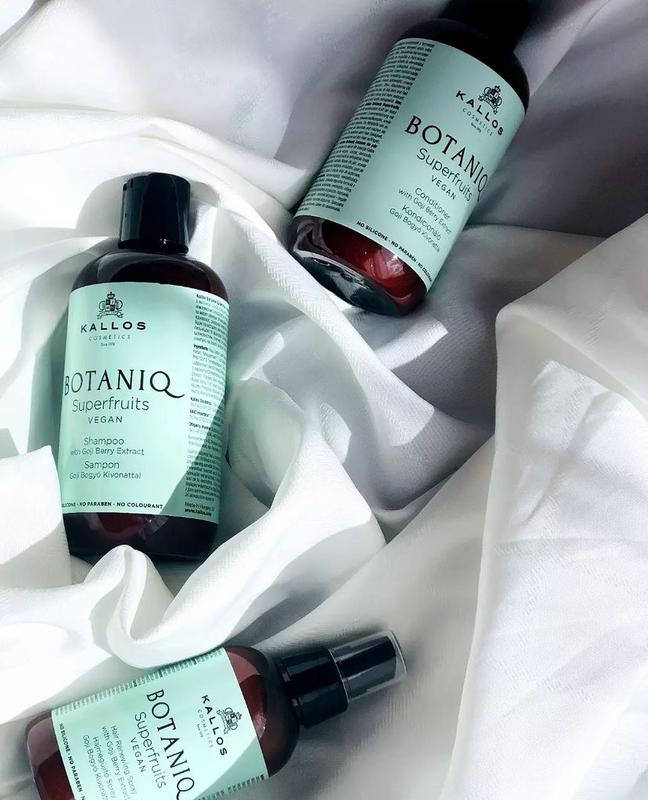 Kallos botaniQ superfruits vegan Зміцнююча, живильна серія з магічною силою природи від колекції Kallos Botania . Особлива, мʼяка формула з комплексом Суперфруктів та натурального арганового, кокосового, оливкового масел та масел авокадо та макадамії, вітамінний комплекс та морська сіль ніжно очищує, відновлює, заряджає енергією та зміцнює волосся. Його активні інгредієнти ягід Годжі та екстракту женьшеню - багаті антиоксидантами - роблять структуру волосся сильнішою та міцнішою. Спеціальне поєднання натуральних масел робить волосся шовковим, сяючим та слухняним. Шампунь - 300 мл Кондиціонер - 300 мл Спрей - 150 мл
