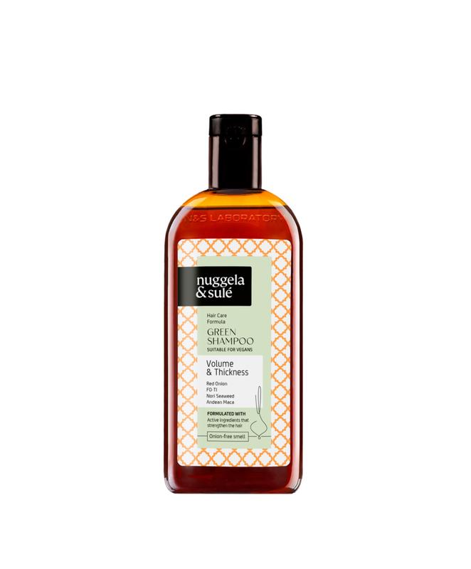 Дефицит белка воздействует на волосы, поскольку потребление белка является решающим для генерации кератиноцитов, отвечающих за производство кератина волос. Веганский шампунь для ослабленных волос Green Shampoo содержит мощное сочетание натуральных активных компонентов с морскими и растительными белками, усиленное экстрактом Fo-Ti, укрепляет волосы и усиливает их объем. Для тонких, слабых и ломких волос. Интенсивный источник полезных белков. придает дополнительный объем и силу защищает волосяное волокно укрепляет волосы восстанавливает волосы веганский продукт Основные компоненты: Fo-Ti – восточное растение, содержащее в 24 раза больше цинка, чем другие растения. Отличный источник железа, лецитина и холина. Андийская мака – растение богато аминокислотами, витаминами, минералами и незаменимыми питательными веществами для здоровья волос. Способствует митозу и производству кератиноцитов во волосяной луковице. Отличный активный компонент для борьбы с выпадением волос, повышения густоты и толщины волос, а также их укрепления. Водоросли нори - морской активный компонент, имеющий один из самых высоких уровней белка (30-50% от его сухой массы). Содержит аминокислоты, белки и полисахариды. Помогает восстановить прочность и жизненную силу волос, а также приукротить пушистость. Экстракт красного лука оказывает полезное действие, которое обеспечивают высокое содержание кверцетина и серы. Кверцетин уменьшает воспаление кожи головы, стимулирует кровообращение, и глубоко питает волосы. Сера благодаря своим антисептическим свойствам устраняет бактерии, а также избыток кожного сала, обеспечивая высокий уровень очистки. Способ применения: Вылейте на ладонь и активируйте формулу растиранием до образования эмульсии. Нанесите на волосы и кожу головы. Помассируйте несколько минут. Тщательно смойте водой. Повторите процедуру для лучших результатов.’ После рекомендуем использовать Hydrating Conditioner, который можно наносить даже на прикорневую зону. *Не волнуйтесь, если в течение первых нескольких дней вы заметите, что ваши волосы не так мягкие. Это нормально, поскольку средство не содержит парафинов и силиконов. После короткого периода использования ваши волосы сбалансируют свое природное действие, улучшит блеск и объем. Особенности: Средство проверено дерматологами. Безопасно для беременных. Ни один из продуктов Nuggela & Sulé не оставляет запаха лука.