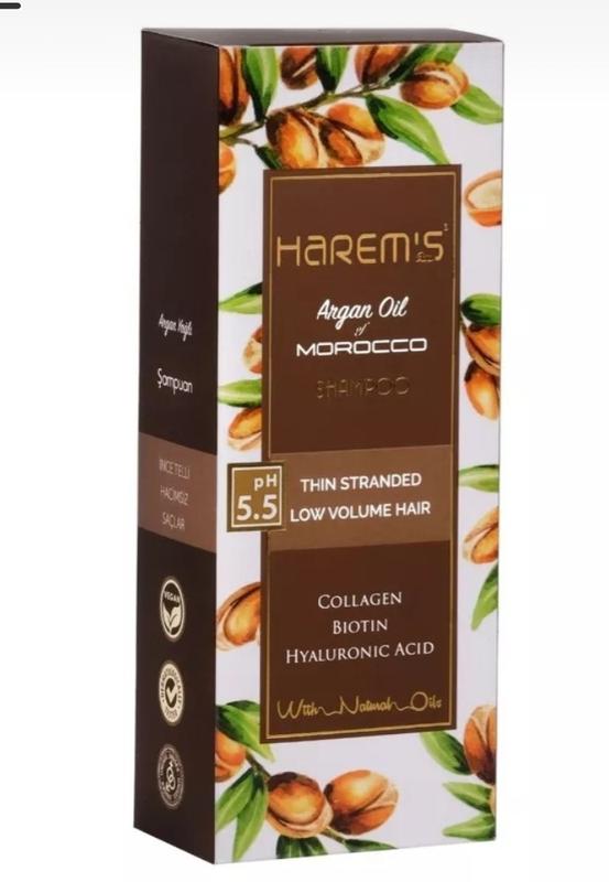 **Шампунь Harem's с аргановым маслом** Объем: 350 мл Тип волос: для всех типов Действие: нежное очищение, питание, блеск и объем Страна производства: Турция Аромат: деревний Вес без упаковки: 375gr Турецкий шампунь Harem's Ottoman с аргановым маслом - идеальный выбор для ухода за волосами с использованием уникальных турецких секретов красоты. Благодаря сочетанию натуральных ингредиентов и современных технологий этот шампунь помогает восстановить и укрепить волосы, придавая им невероятную мягкость, блеск и эластичность. **Активный компонент** Аргановое масло - настоящий эликсир красоты для волос. Она богата полезными веществами, витаминами и антиоксидантами, которые питают и восстанавливают структуру волос, делают их более здоровыми и красивыми. **Свойства шампуня** - Увлажняет, предотвращает сухость и ломкость волос. - Нежно очищает кожу головы и волосы, удаляя загрязнения и остатки стайлинговых средств. - Облегчает расчесывание, придает шелковистость и естественное сияние. - Способствует регенерации и укреплению волосяных луковиц, активизирует рост волос и предотвращает их выпадение. **Превесы** После использования шампуня ваши волосы станут ухоженными, шелковистыми на ощупь и приобретут невероятный блеск. Его нежная текстура и приятный древесный аромат подарят вам истинное удовольствие от ухода. **Спытайте шампунь Harem's с аргановым маслом и получите ухоженные волосы, о которых вы всегда мечтали!* 🌿✨