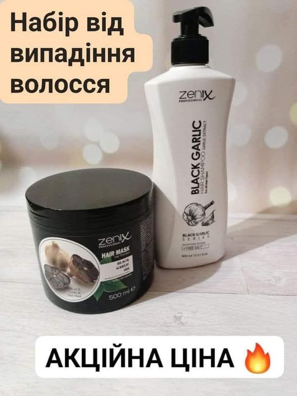 ЧЕРНЫЙ ЧАСТЬ - СЕКРЕТ ГУСТОЙ И ЗДОРОВОЙ ШЕВЕЛЮРЫ! Набор шампунь + маска с экстрактом ЧЕРНОГО ЧАСТА - это настоящая находка для ваших волос! Черный чеснок - природный стимулятор роста волос, который пробуждает омертвевшие волосяные луковицы, уменьшает выпадение и делает волосы густыми и здоровыми. Набор мягко очищает кожу головы, предотвращает перхоть, борется с ломкостью и секущимися кончиками, оставляя волосы шелковистыми и блестящими. Работает ШВИДКО и ЭФФЕКТИВНО, уже через короткое время вы заметите результат. Подходит для любого типа волос, имеет приятный аромат.