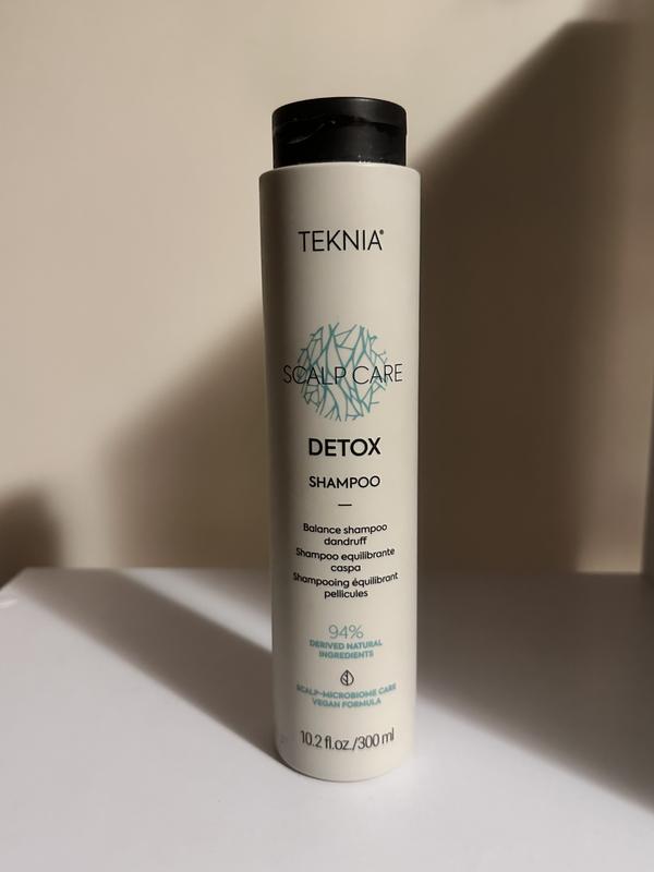 Мицеллярный шампунь от сухой и жирной перхоти Lakme Teknia Scalp Cate Detox Shampoo очищает, освежает и смягчает кожу головы, уменьшает сухую и жирную перхоть, избавляет ее от покраснений и раздражений. Teknia Scalp-Care - это новый уход за кожей головы с микробиом. Он устраняет корень всех проблем, возникающих из-за дисбаланса микрофлоры кожи головы - микробиома. Преимущества: с помощью биотехнологий восстанавливается баланс микрофлоры; активные ингредиенты питают "хорошие" бактерии кожи головы и подавляют болезнетворные микроорганизмы; Ol & eacute;oactif (первый органический постпребиотический раствор) укрепляет микробиоту кожи головы, оказывает балансирующее действие и способствует естественной защите кожи головы; кринипан зеленый (активный ингредиент последнего поколения, 100% натуральное органическое происхождение) регулирует обновление клеток, делает кожу головы мягкой, избавляет от перхоти и покраснений; натуральный ментол (антисептик) обеспечивает охлаждающий эффект; средство обладает успокаивающим ароматом свежей мяты с эфирным маслом мандарина.
