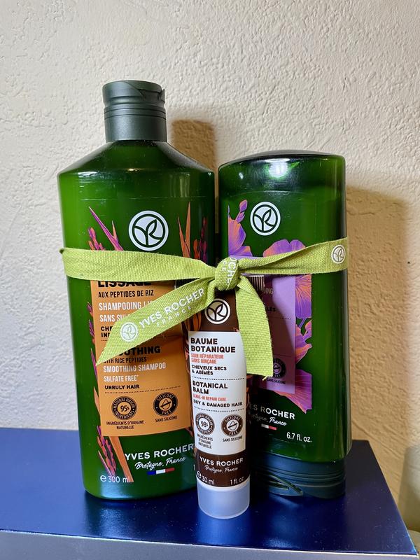 1) Шампунь для гладкости волос с пептидами риса Разглаженные и послушные волосы. 300 мл Специально разработанная безсульфатная формула нового шампуня с пептидами риса для непослушных сухих волос бережно очищает и смягчает, разглаживает и придает волосам блеск. 2) Бальзам-кондиционер для волос с экстрактом льна Структурирует на протяжении 24 ч 200 мл Обогащенный органическим льном, кондиционер для распутывания кудрей бережно питает и помогает сделать кудрявые волосы более структурированными. Локоны становятся более упругими, а волосы - мягкими, легкими и блестящими. Тип волос : Кудрявые. Основное действие : Структурирует кудри на 24 ч* Текстура : Бальзам. 3) Универсальный уход с маслом жожоба для сухих поврежденных волос Питает и восстанавливает до самых кончиков 30 мл Сухие и поврежденные волосы нуждаются в особом интенсивном уходе, как в процессе очищения, так и после. Универсальный продукт представлен в виде Универсального Ухода, который, как и вся гамма, обогащен органическим маслом жожоба, авокадо и кокоса. Универсальный уход - это звездный продукт гаммы, поскольку он делает волосы в 30 раз более устойчивыми к агрессивным факторам окружающей среды, восстанавливает длину во время 8 часов сна, как в ночной маске для волос, так и после очищения, как несмываемый восстанавливающий уход. Рекомендации по применению: наносить 2-3 раза в неделю равномерно по всей длине волос, избегая корней. Не требует смывания. Используйте 1. в качестве ночной маски на сухих волосах; или 2. в качестве дневного несмываемого ухода за влажными или сухими волосами; или 3. на влажных волосах перед сушкой для облегчения расчесывания и укладки; или 4. в качестве средства укладки на влажных или сухих волосах для того, чтобы сделать вьющиеся волосы более послушными, или в качестве вспомогательного средства при укладке волос с термоустройствами.