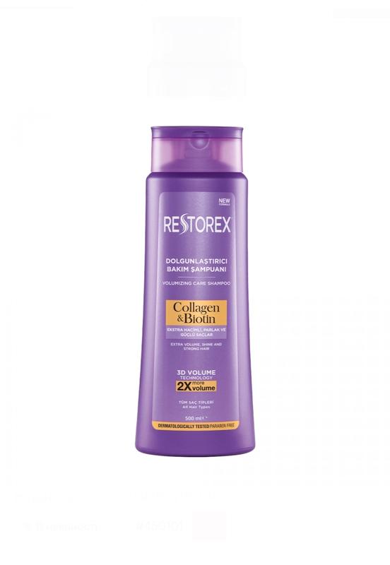 Шампунь придающий объем для всех типов волос "коллаген и биотин" restorex, 500 мл