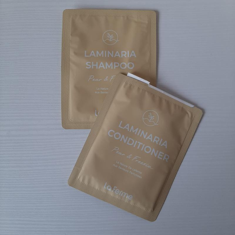 Шампунь и кондиционер La Ferme 7 ml для питания волос безсульфатный содержит много экстрактов полезных растений действует мягко, но эффективно Аромат Груши и ффрезии Цена указана за 2 шт Пригоден к 01.2026 Корея