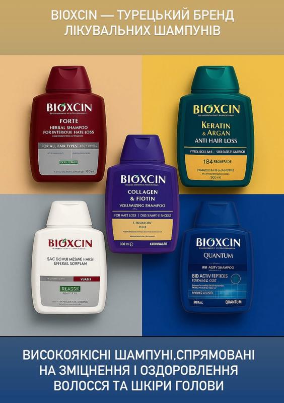Шампунь Bioxcin - в наявності цілий мікс . Виробленний в Туреччині , натуральний . Підходить на всі проблеми з волоссям .Якщо брати 2- 3 шт , діє знижка ( - 20 гривень ) .