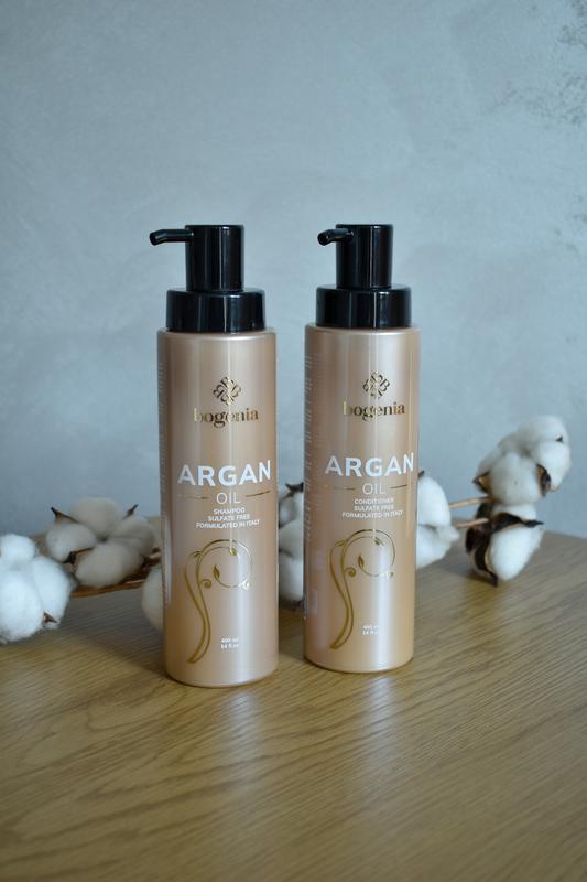 Шампунь для волос с аргановым маслом Bogenia Шампунь для волос с аргановым маслом итальянской лаборатории Bingo Hair Cosmetic не только мягко очищает волосы, но и питает их аргановым маслом, кератином, протеинами, жирными кислотами и витаминным комплексом. Благодаря этому во время мытья происходит так называемая ламинация волос (окутание каждого волоска тончайшей защитной пленочкой). Это, в свою очередь, является основой гладкости и здоровья ваших волос. Шампунь насыщен витамином Е, натуральными эфирными маслами и зерновыми аминокислотами. При регулярном использовании шампуня от известного бренда Bingo Hair Cosmetic локоны станут послушными, эластичными и блестящими, кончики прекратят сечься, волосы не будут пушиться, а шелушения кожи головы и образование перхоти останутся в прошлом. Кондиционер для волос с аргановым маслом Bogenia Невероятно сияющие и шелковистые волосы с кондиционером корейского бренда Bogenia. Бьюти-продукт отлично смягчает, увлажняет и наполняет волосы питательными веществами. Средство обогащено аргановым маслом. Действуя комплексно, компоненты реанимируют и заметно преображают волосы: наполняют влагой, питают и делают более мягкими на ощупь; укрепляют структуру, облегчают расчесывание и укладку; защищают от обезвоживания и внешних негативных воздействий.