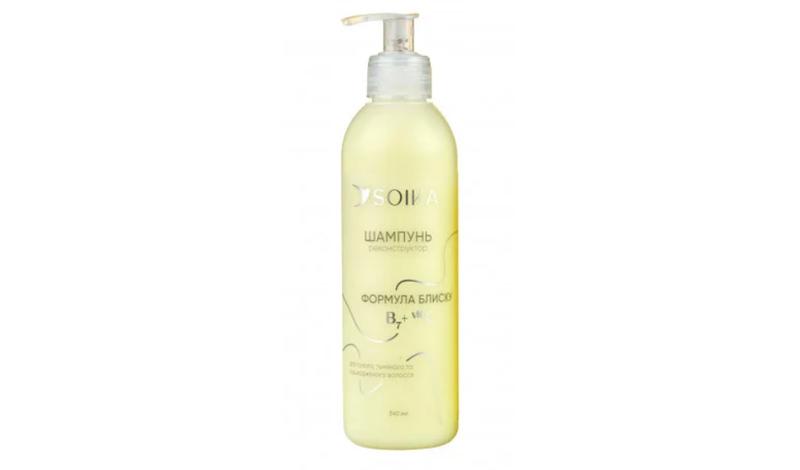 Відкрийте для себе секрет сяючого та доглянутого волосся з шампунем- реконструктором «Формула Блиску» від ТМ Soika. Створений для тих, хто цінує здоровий вигляд і природну красу, цей шампунь поєднує делікатність щоденного догляду та ефективність професійних активних компонентів. М'яке очищення без обтяження Легка формула дбайливо видаляє забруднення та надлишок себуму, зберігаючи природний баланс шкіри голови. Волосся стає свіжим, легким і слухняним. Формула для сяйва і сили - Біотин (вітамін B7) -- допомагає зменшити ламкість, стимулює ріст та зміцнює структуру волосся від коренів до кінчиків. - Аскорбіл глюкозид (вітамін C) -- потужний антиоксидант, який підтримує природне сяйво, захищає від впливу зовнішніх факторів і покращує зовнішній вигляд локонів. Ця комбінація активів сприяє збереженню кератину у волоссі, роблячи його більш пружним, гладеньким і блискучим. Результат, який ви відчуєте Регулярне використання шампуню забезпечує: - здоровий блиск і природне сяйво; - зміцнену структуру волосся; - відчуття свіжості та легкості після кожного миття. Спосіб застосування: нанести невелику кількість шампуню на вологе волосся, м'якими масажними рухами спінити та розподілити по всій довжині. Змити водою. При необхідності повторити. Soika -- створюємо догляд з турботою та любов'ю до вашої природної краси.