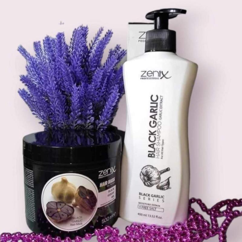 Шампунь с экстрактом черного чеснока Zenix, 400 мл Маска для волос с маслом черного чеснока Zenix, 500 мл Если вам нужно укрепить корни волос или оздоровить локоны и сделать их чрезвычайно гладкими, то шампунь + маска Zenix с натуральным экстрактом черного чеснока как нельзя лучше подходит для решения этих задач! Кроме своей основной миссии противодействовать выпадению, черный чеснок отлично справляется и с другими важными задачами: тщательно очищает кожу головы от омертвевших клеток, тем самым предотвращая образование перхоти, уменьшает ломкость, избавляет от секущихся кончиков отлично разглаживает и надолго сохраняет шелковистую мягкость прядок. И главное: черный чеснок благотворно влияет на любой тип волос без ограничений! Шампунь не имеет запаха чеснока и не содержит вредных для здоровья веществ.