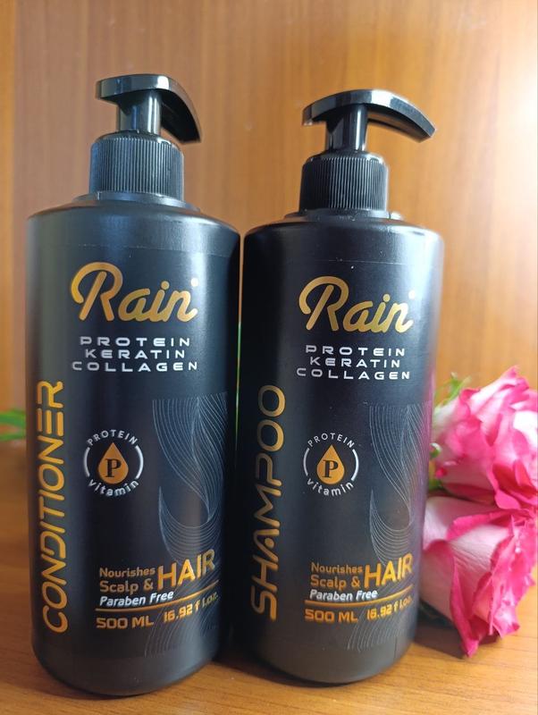 Шампунь та кондиціонер Rain з протеїном, кератином та колагеном — дуо, після якого волосся виглядає так, ніби ти щойно з салону Що роблять: 🌬️ відновлюють пошкоджене волосся ✨ додають блиску та гладкості 💪 зміцнюють по довжині 💧 зволожують і знімають пушіння Об’єм 500 мл — вистачає надовго 💛 Ціна кожного — 249