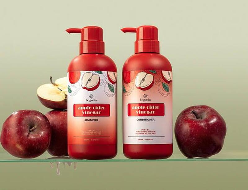 Набір для пошкодженого жирного волосся з екстрактом яблучного оцту bogenia, шампунь і конд...