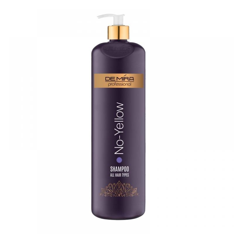 Фиолетовый шампунь для нейтрализации желтого оттенка NO-YELLOW DEMIRA Professional, 1000 мл Demira Professional No-Yellow -- шампунь, предназначенный для ухода за светлыми и осветленными волосами. Благодаря содержанию фиолетового пигмента, средство эффективно устраняет нежелательный желтый оттенок. Шампунь усиливает блеск холодного и серебристого блонда, а натуральным волосам придает холодное платиновое сияние. Особенности Demira Professional No-Yellow: - Провитамин B5 насыщает кожу головы и волосы питательной влагой, образует на поверхности кутикулы легкий защитный барьер, предотвращающий появление сухости и ломкости - Экстракт трехцветной фиалки борется с выпадением волос и перхотью, оказывает противомикробное и заживляющее действие на кожу головы - Масло мирры укрепляет корни, ускоряет рост волос, увеличивает объем и блеск Способ применения: Намочите волосы - Нанесите небольшое количество шампуня на волосы - Вотрите до образования пены - Оставьте на 2-5 минут для воздействия - Смойте теплой водой - При необходимости повторите - При попадании в глаза тщательно промойте их водой