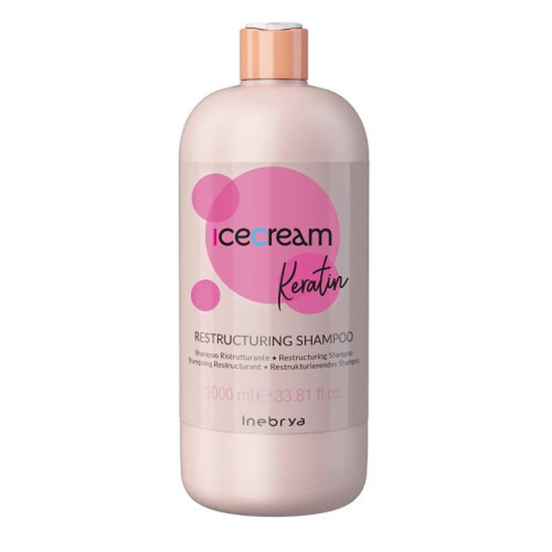 Шампунь восстанавливающий с кератином Inebrya Keratin Restructuring Shampoo, 1000 мл Этот шампунь хорошо очищает загрязнения и фиксирующие средства, мягкий к коже головы, не вызывает раздражений, сухости и зуда. Благодаря своему составу он увлажняет, питает волосы, сохраняя необходимый естественный уровень влаги. Придает блеск и убирает чрезмерную пушистость. Keratin Restructuring Shampoo идеальный выбор для окрашенных, химически завитых волос и часто подпадающих под действие высоких температур.