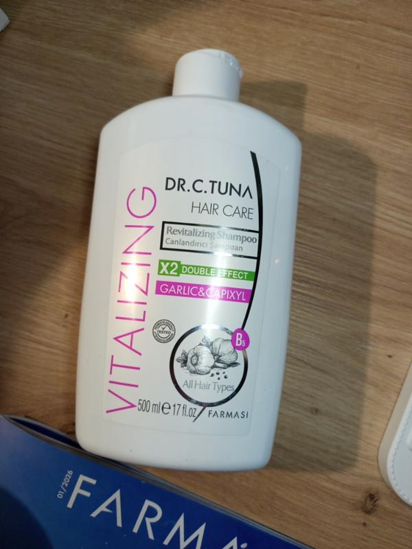Производитель Турция сертифицированная косметика Шампунь с экстрактом чеснока Vitalizing, 500 мл Качество отличное, лично попробуете ✅ Dr. C. Tuna Farmasi Vitalizing Garlic оживляющий-реанимирующий шампунь содержит чеснок и капексил, которые являются отличными средствами для ломких волос. Реанимирует поврежденные волосы и питает их, обволакивая каждый волосок. При регулярном использовании укрепляет секущиеся волосы, предотвращает появление перхоти и придает им блеск и здоровый вид. Шампунь способствует усиленному росту волос и их восстановлению. Экстракт чеснока питает и укрепляет волосы. Регулярное применение шампуня поможет сделать волосы привлекательными и здоровыми, ведь Farmasi заботится не только о внешней красоте, но и о здоровье кожи головы. Не содержит красителей, парабенов, силиконов, триклозанов и формальдигидов. Можно использовать ежедневно