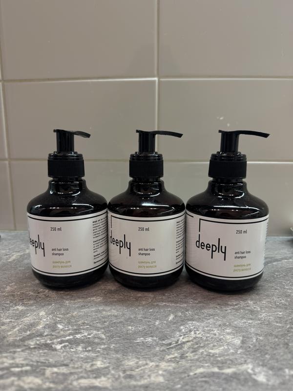 Шампунь для росту волосся deeply anti hair loss shampoo Шампунь для росту волосся deeply anti hair loss shampoo — це мʼякий, але ефективний засіб для тих, хто мріє зменшити випадіння та стимулювати ріст волосся. Завдяки комплексу активів,цей засіб для очищення: — покращує мікроциркуляцію крові у шкірі голови; — поліпшує живлення волосяних фолікулів; — нормалізує виділення себуму. Волосся росте сильнішим, залишається чистим довше, зʼявляється природний прикореневий обʼєм і щільність по довжині. Якщо хочеш не просто мити голову, а реально підтримувати здоровʼя волосся — потрібно шампунь для росту волосся купити саме такий. Він гарантує ефект вже з першого застосування. Як працює шампунь проти випадіння deeply anti hair loss shampoo? — кофеїн та екстракт розмарину стимулюють кровообіг, пробуджують фолікули та запускають ріст нового волосся; — аргінін та вітамін Е зміцнюють волосяні цибулини та сприяють їх глибшому живленню; — ніацинамід регулює виділення себуму та зміцнює захисний барʼєр шкіри голови; — алантоїн заспокоює, помʼякшує та знімає подразнення; — формула без агресивних сульфатів підходить для щоденного догляду.