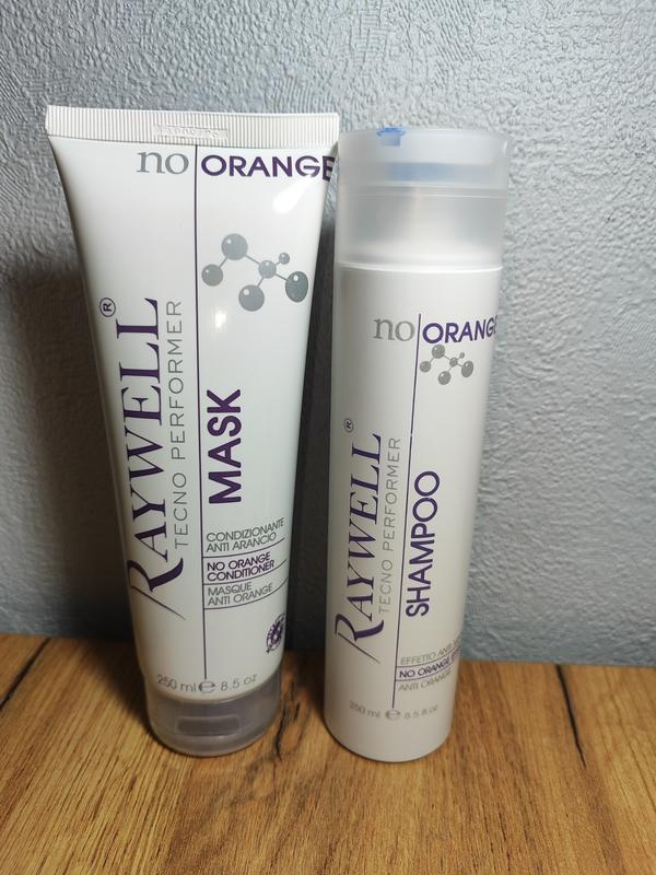 Набор Raywell No Orange шампунь и маска с синим пигментом для окрашенных волос В составе набора: Шампунь Raywell No Orange Shampoo с синим пигментом для окрашенных волос 250 мл. Маска Raywell No Orange Mask с синим пигментом для окрашенных волос 250 мл. Каждая обладательница осветленных локонов знает, как важно сохранить аккуратный холодный оттенок на них. Со временем цвет окисляется, поэтому волосы могут обрести нежелательный желтый, оранжевый или медный оттенок. Чтобы избавиться от него, специалисты предлагают воспользоваться средствами новой линии косметики от итальянского профессионального бренда Raywell - шампунь и маска No Orange легко решить эту проблему, ежедневно ухаживая за вашими волосами. Особенности No Orange Shampoo: мягко и деликатно очищает окрашенные локоны; не вымывает пигмент, а наоборот - усиливает яркость оттенка; придает волосам ухоженный вид и блеск; защищает волосы от воздействия температуры и механических повреждений; укрепляет и уплотняет структуру волос; убирает нежелательные теплые оттенки; надолго оставляет волосы свежими и чистыми. В составе шампуня содержатся полезные ингредиенты: кератин - восстанавливает, разглаживает и укрепляет волосы, предупреждая их сухость и сечение; аргановое масло - глубоко питает и насыщает влагой каждый локон; древесный уголь - способствует тщательному очищению локонов и кожного покрова от загрязнений, придает объем. Особенности маски Raywell No Orange Mask: Увлажняет и смягчает; Повышает эластичность волос; Предупреждает ломкость, укрепляет; Защищает волосы от механического воздействия; Усиливает блеск; Повышает плотность локонов. Активные компоненты состава маски: кератин – основной укрепляющий структуру волос протеин; аргановое масло - натуральный питательный компонент.