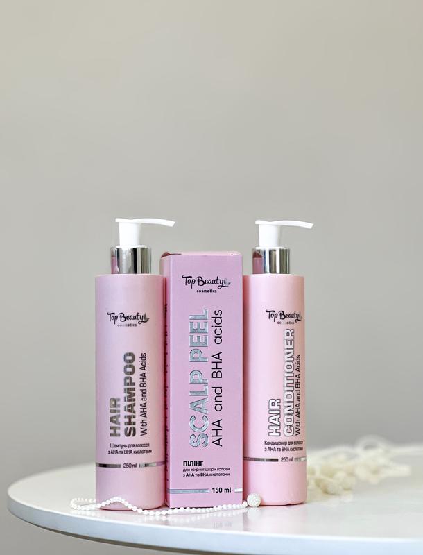 Шампунь для волос с АНА и ВНА кислотами Шампунь предназначен для деликатного и глубокого очищения кожи головы. В состав шампуня входят мягкие ПАВ и комплекс кислот, которые ускоряют обновление кожи головы и подавляют выделение кожного сала. Также кислоты оказывают положительное влияние на именно волосы, способствуя их увлажнению и восстановлению их структуры. 📍Кондиционер для волос с АНА и ВНА кислотами Кондиционер предназначен для легкого расчесывания тавосстановлений волос. АНА кислоты (яблочная, молочная, гликолевая) и ВНА (салициловая кислота) в составе кондиционера обеспечивают закрытие кутикулы волос, увлажняют и способствуют восстановлению его структуры. 🤩Пилинг для жирной кожи головы с АНА и ВНА кислотами. Пилинг предназначен для дополнительного очищения кожи головы. Кислоты в составе пилинга обеспечивают мягкий эффект отшелушивания, а натуральные экстракты способствуют питанию и восстановлению кожи.