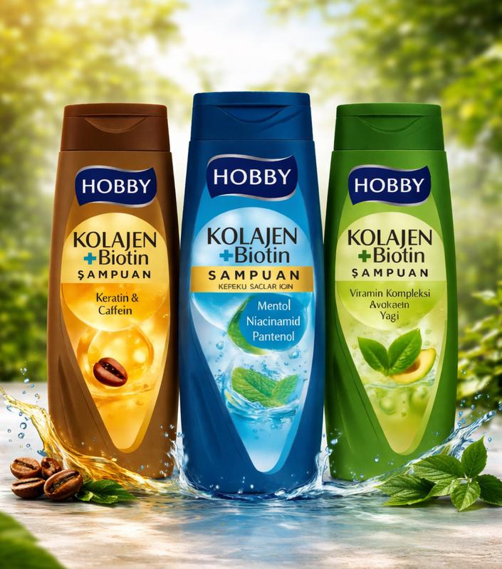Користь шампунів Kolajen + Biotin від Hobby: Загальна користь лінійки • зміцнюють волосся по всій довжині • зменшують ламкість і випадіння • додають блиск і щільність • підтримують здоров’я шкіри голови • підходять для регулярного використання Коричневий (Keratin & Caffeine) • зміцнює ослаблене волосся • стимулює корені • допомагає при випадінні • надає волоссю силу й еластичність Синій (Menthol, Niacinamide, Panthenol) • освіжає та охолоджує шкіру голови • допомагає проти лупи • зменшує свербіж • дарує відчуття чистоти й легкості Зелений (Vitamin Complex & Avocado Oil) • глибоко живить і зволожує • пом’якшує сухе волосся • робить волосся гладким і слухняним • додає природний блиск