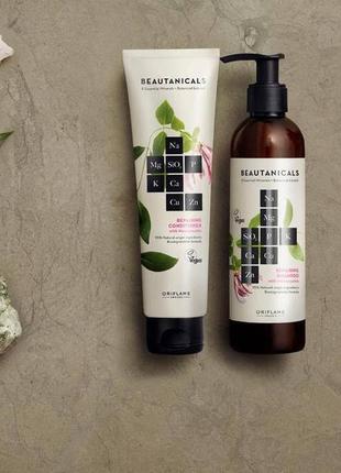 Восстанавливающий шампунь Beautanicals Кремовый шампунь бережно очищает и питает волосы. 97% женщин подтвердили: после использования волосы восстановлены и выглядят здоровыми*. ● Содержит 8 полезных для кожи и волос минералов: кальций и фосфор отвечают за рост и восстановление, натрий и калий насыщают волосы влагой; ● Экстракт жимолости укрепляет повреждённые и ослабленные волосы; ● Сертифицирован Веганским обществом — а значит не содержит ингредиентов животного происхождения; ● Протестирован под дерматологическим контролем; 250 мл/2025 Восстанавливающий кондиционер для волос Нежный кремовый кондиционер восстанавливает и облегчает расчесывание. 97% женщин подтвердили: после использования волосы восстановлены и выглядят здоровыми*. ● На 95% состоит из натуральных ингредиентов; ● Содержит 8 полезных для кожи и волос минералов: кальций и фосфор отвечают за рост и восстановление, натрий и калий насыщают волосы влагой; ● Экстракт жимолости укрепляет повреждённые и ослабленные волосы; ● Сертифицирован Веганским обществом — а значит не содержит ингредиентов животного происхождения; ● Протестирован под дерматологическим контролем; 150 мл/2025