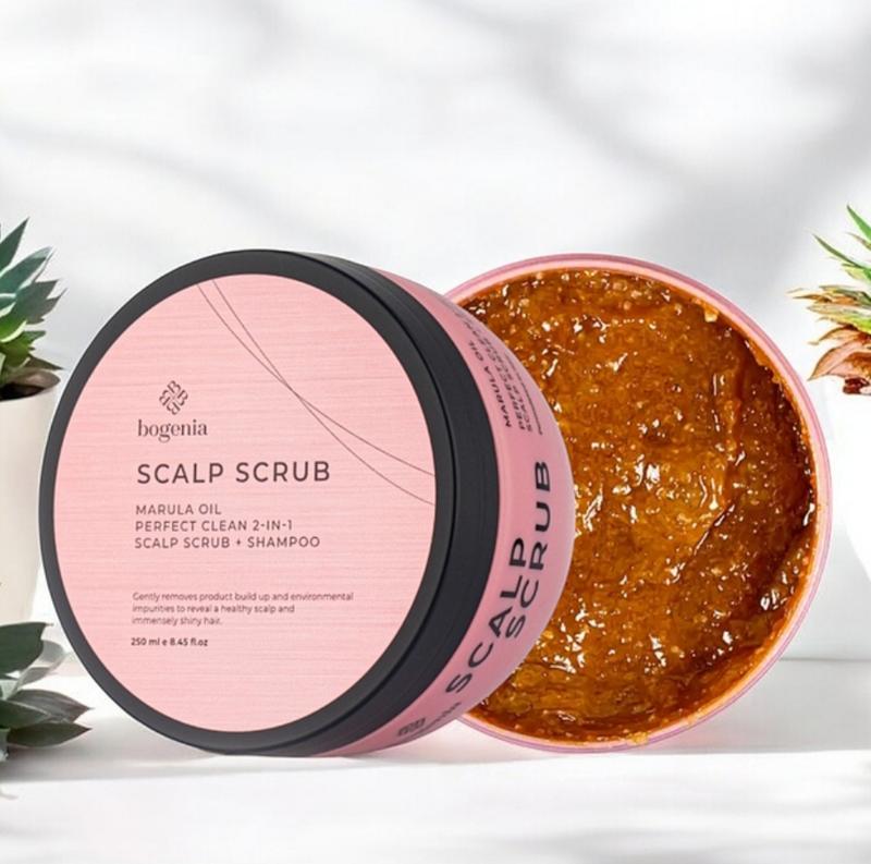 Этот продукт по уходу за волосами сочетает свойства двух продуктов - шампуня и скраба для кожи головы. После его использования волосы становятся сияющими, объемными, шелковистыми, а кожа головы - идеально чистыми. Активный компонент скраба для волос - масло марулы, которое обладает множеством ценных свойств: регенерирует поврежденные волосы благодаря высокому содержанию жирных кислот; восстанавливает структуру локонов по всей длине, делая их более прочными и эластичными; защищает волосы от внешних воздействий солнца, ветра, загрязнений, создавая на них защитную пленку; придает локонам блеск и шелковистость; облегчает расчесывание, делает волосы более послушными; подходит для всех типов волос - от сухих и поврежденных до жирных; не отягощает пряди и не оставляет жирного блеска даже при регулярном использовании. Способ применения: нанесите скраб на влажные волосы, промассируйте кожу головы 2-3 минуты. Смойте чистой водой. Используйте вместе с другими средствами из серии Bogenia Marula Oil - маской, кондиционером, спреем-термозащитой, маслом для волос.