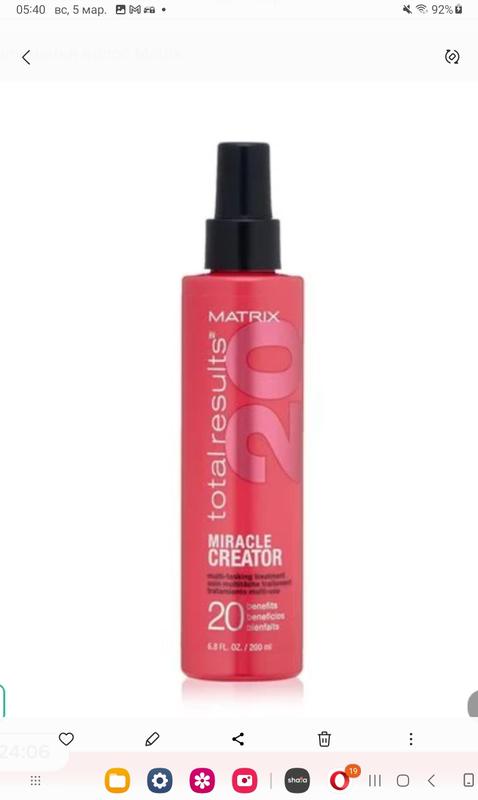 Уникальное средство для волос Matrix Total Results Miracle Creator помогает совместить ухаживающие процедуры с профессиональной укладкой в домашних условиях. Этот мультифункциональный спрей с формулой 20 в 1 решает многие проблемы волос: питает и увлажняет, разглаживает и укрепляет кутикулу, усиливает блеск и кондиционирует, уменьшает ломкость и «запаивает» посеченные кончики.