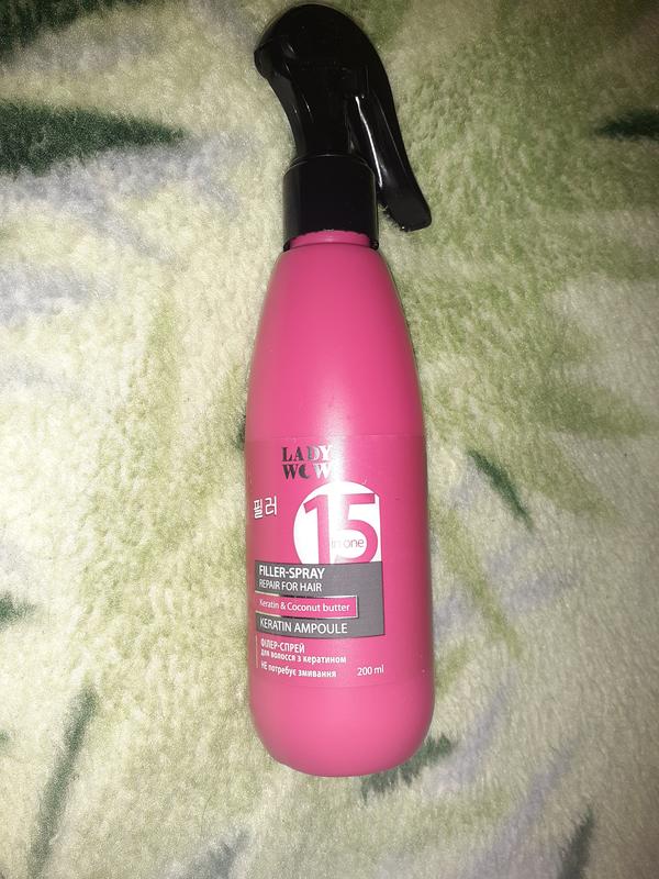 Спрей филлер для волос 15 в 1 леди WOW, с кератином и кокосовой олией.В состоянии новых.Сделан один затест,не подошло к моим волосам.Очень приемная не смывающаяся масочка для волос, большой объем за такую малую цену!