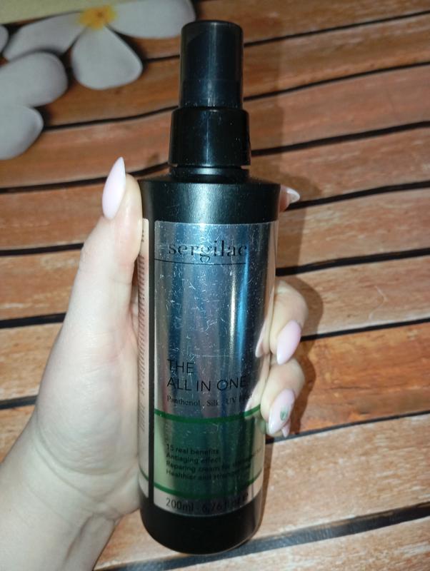 Профессиональная формула с протеинами шелка, пантенолом и UV фильтрами действует моментально и обеспечивает накопительный эффект. Представленный бьюти-продукт - идеальный помощник в уходе за вялыми, сухими и поврежденными волосами. Эластичность, здоровый блеск, мягкость и шелковистость – результат уже после первого применения бьюти-продукта. Особенности Sergilac The All In One: рекомендуется для оздоровительной терапии безжизненных, сухих и поврежденных волос; - нежная кремовая формула; - активные компоненты – пантенол и протеины шелка; - пантенол – нормализует межклеточный метаболизм, стимулирует рост волос; - восстанавливает поврежденные участки волосяных волокон; - создает на поверхности каждого волоска невидимый защитный слой; - добавляет здоровый блеск; - до 10% утолщает структуру волосяных волокон; - протеины шелка - уплотняют волосы, снимают статическое электричество, придают эластичность и блеск; - сглаживают кератиновые чешуйки; - заполняет поврежденные участки и восстанавливает защитный слой волос; - содержит UV фильтры для защиты от солнца.