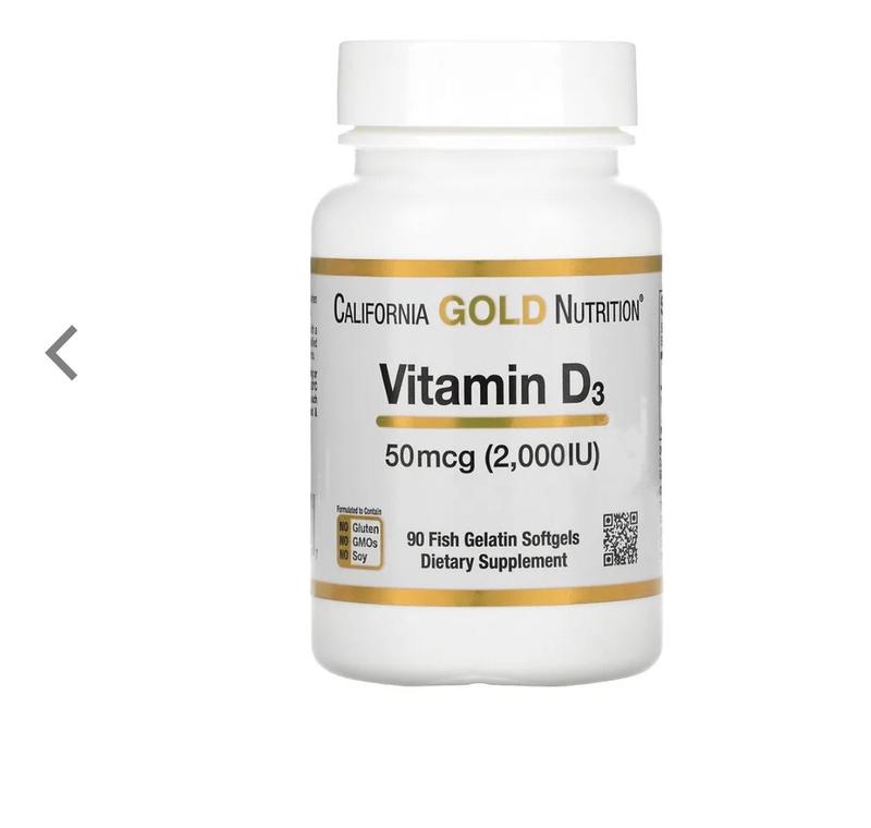 Вітамін D3 California Gold Nutrition 50 мкг (2000 МО) Капсули з риб’ячого желатину Сприяє підтримці здоров’я кісток і зубів* Сприяє здоров’ю імунної системи* Продукт не містить глютену, ГМО та сої Виготовлено на підприємстві, яке має реєстрацію сучасної належної виробничої практики (cGMP) і проходить незалежні перевірки Вітамін D3 — оптимальна для організму форма вітаміну D, який іноді називають «вітаміном сонячного світла», оскільки він виробляється в шкірі під впливом сонячних променів. Вітамін D є незамінним вітаміном для багатьох метаболічних процесів. Вітамін D3 допомагає регулювати засвоєння кальцію і фосфору, а також підтримує здорову функцію імунної системи*. California Gold Nutrition, Вітамін D3 містить 50 мкг (2000 МО) вітаміну D3 у вигляді холекальциферолу з ланоліну в капсулах із риб’ячого желатину. Багато товару на залишку.Запитуйте!