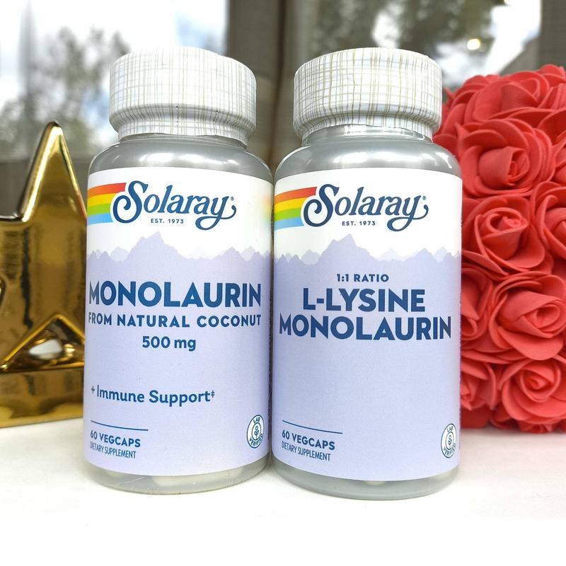 Solaray Монолаурин, L- лизин + монолаурин, 60 капсул -- Монолаурин, 500 мг, 60 капсул - 695 грн; -- L- лизин и монолаурин в соотношении 1:1, 60 капсул - 580 грн Природный антибиотик, борется с вирусами и бактериями! Производство США. Бактерицидное, противовирусное и противогрибковое средство. Монолаурин представляет собой моноэфир лауриновой кислоты, жирной кислоты, содержащейся в кокосовом масле и присутствующей в грудном молоке. Для чего монолаурин нужен взрослому человеку? Главная функция монолаурина – борьба с различными инфекциями. Он хорошо справляется как с патогенными бактериями, так и с вирусами или грибками. При взаимодействии с вирусом монолаурин присоединяется к его оболочке, предотвращая проникновение в клетки. Сильнее всего препарат воздействует на вирусы гриппа, герпеса, кори, краснухи. Многие патогенные бактерии также нейтрализуются при взаимодействии с монолаурином. Бактерицидное действие проявляется благодаря проникновению вещества внутрь патогенных бактерий и разрушению внутриклеточных связей. При этом препарат не является лекарственным средством и не оказывает негативного воздействия на организм человека. Это позволяет принимать монолаурин долгие годы и не формировать устойчивости к лекарствам. Помимо бактерицидного, противовирусного и противогрибкового эффекта монолаурин обладает следующими свойствами: - защищает организм от кишечных паразитов (лишает их возможности двигаться, после чего они выходят из организма естественным путем); - поддерживает здоровье микрофлоры кишечника (следовательно, улучшает пищеварение); - стабилизирует метаболизм; - омолаживает кожу; - нормализует эмоциональное состояние. - Пищевая добавка; - Из натурального кокоса; - Поддержка иммунной системы; - Эффективность подтверждена результатами лабораторных исследований. Рекомендации по применению: Принимать по одной капсуле два раза в день во время еды или запивая стаканом воды.