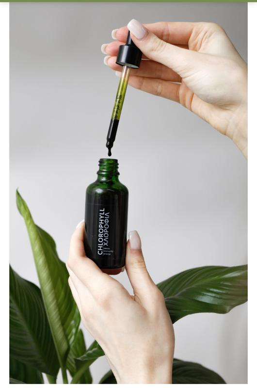 ХЛОРОФІЛ – зелений рослинний пігмент, який поєднує в собі потужні поживні речовини, завдяки чому має системний вплив на організм. На сьогодні вже досконало доведено позитивний вплив на імунітет, кровотворення, метаболічні процеси, антиоксидантну та антимутагенну активність. Детокс • Антиоксидант • Імунотроп • Кисневий енерготонік • Біологічний каталізатор метаболізму • Регулятор глікемічного індексу • Корекція ваги • Антианемічна дія • Стрес-адаптоген та антидепресант • Внутрішній дезодорант • Профілактика передчасного старіння • Природний гіалуроновий філер • Онкопротектор • Кардіопротектор • Природний пре- і пробіотик